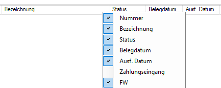 Spalten können Sie ein- oder ausblenden in dem Sie mit der rechten Maustaste auf eine beliebige Spaltenüberschrift klicken und die Spalte auswählen.
